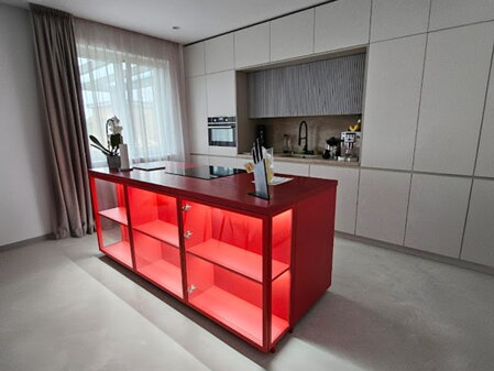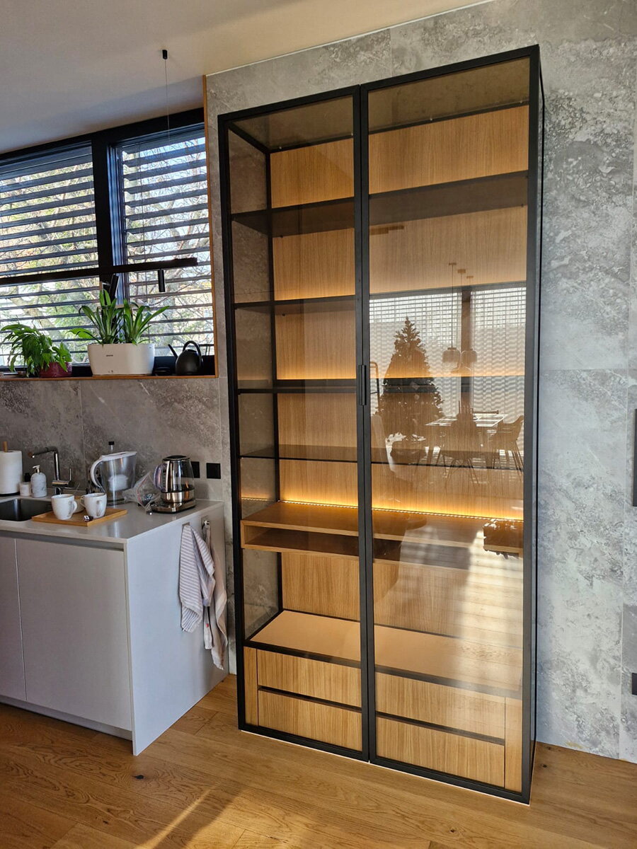 Ponúkame rôzne tvary hliníkových rámov a výplní – číre alebo matné sklo, dekoračné fólie či dizajnové panely. Všetky dvierka na kuchynskú linku vyrábame na mieru, čo znamená presné prispôsobenie vašim rozmerom aj štýlu. Môžu byť použité ako vitríny, čelá skriniek alebo dizajnový prvok v interiéri.